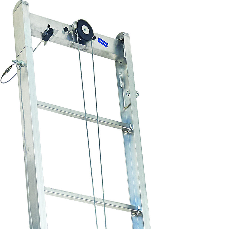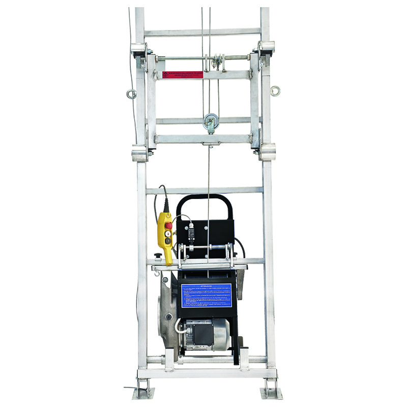 Scara rulantă LIFT 2000 permite ridicarea materialelor prin utilizarea unui cărucior special trasat de un cablu de oțel pe o structură modulară din aluminiu cu elemente de lungimi diferite.