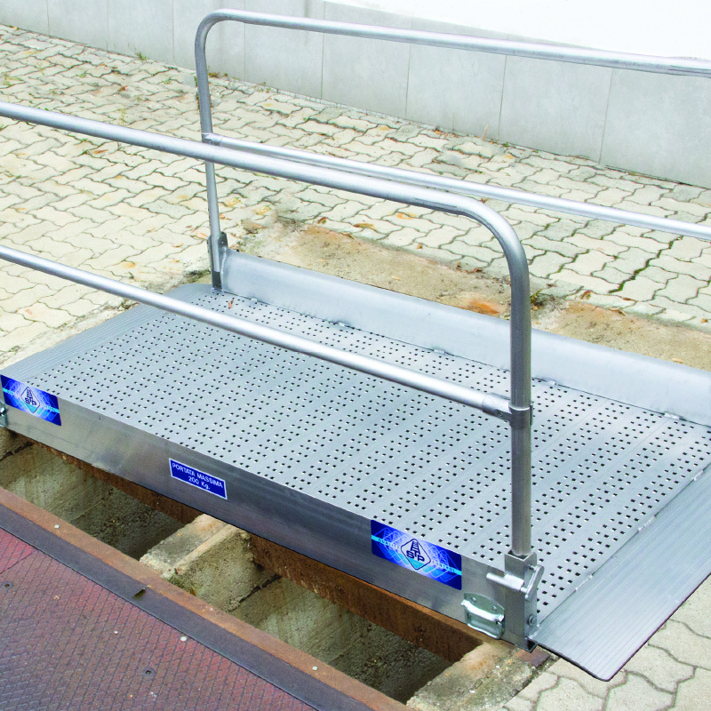 Model de pasarela din aluminiu pe șanț cu balustrade rabatabile