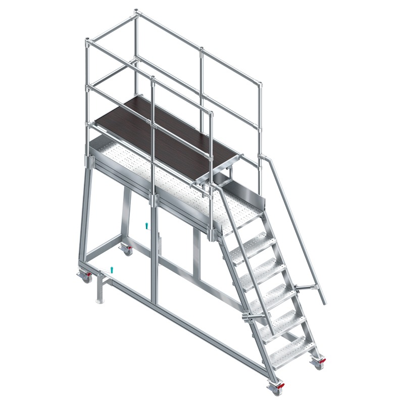 Descriere: Scară mobilă de podium complet demontabilă pentru uz profesional, ideală pentru întreținerea suprafețelor mari la înălțime.