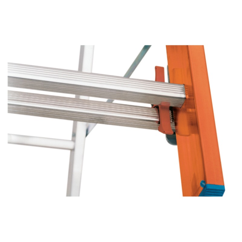 Scara este construită cu montanți din fibră de sticlă și trepte tip scări în trepte din aluminiu.