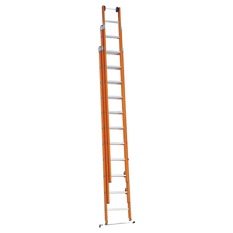 Scară industrială fără bază izolatoare construită cu montanți din fibră de sticlă și trepte trepte din aluminiu, disponibilă în 2/3 tronsoane, manual sau cu frână.