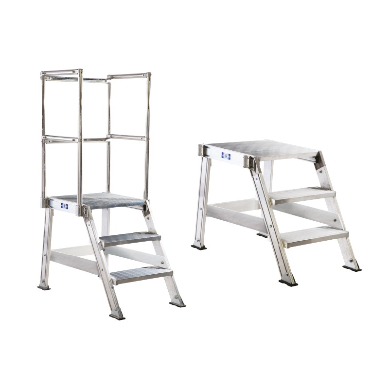 Scaun ideal pentru uz industrial realizat din aluminiu, cu posibilitatea de a fi echipat cu parapet.
