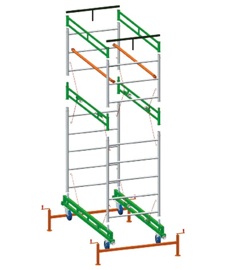 - Construit conform normei europene UNI, la cerere EN 1004, utilizare fără ancorare la interior până la 12 m și la exterior până la 8 m (consultați instrucțiunile).